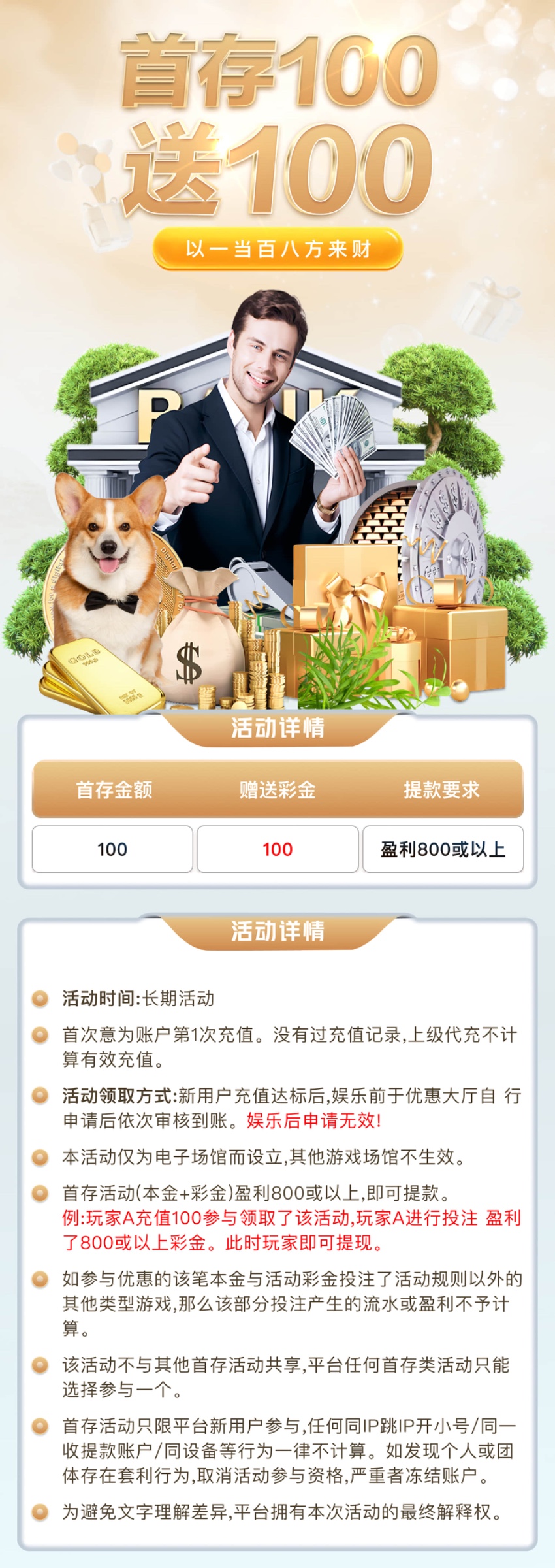 返现活动:周期累计充值1000累计活跃3天累计流水3000过审返现588不过保底88-188